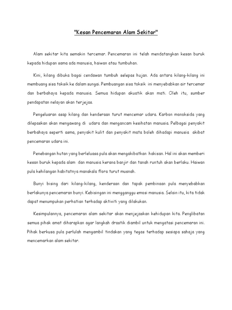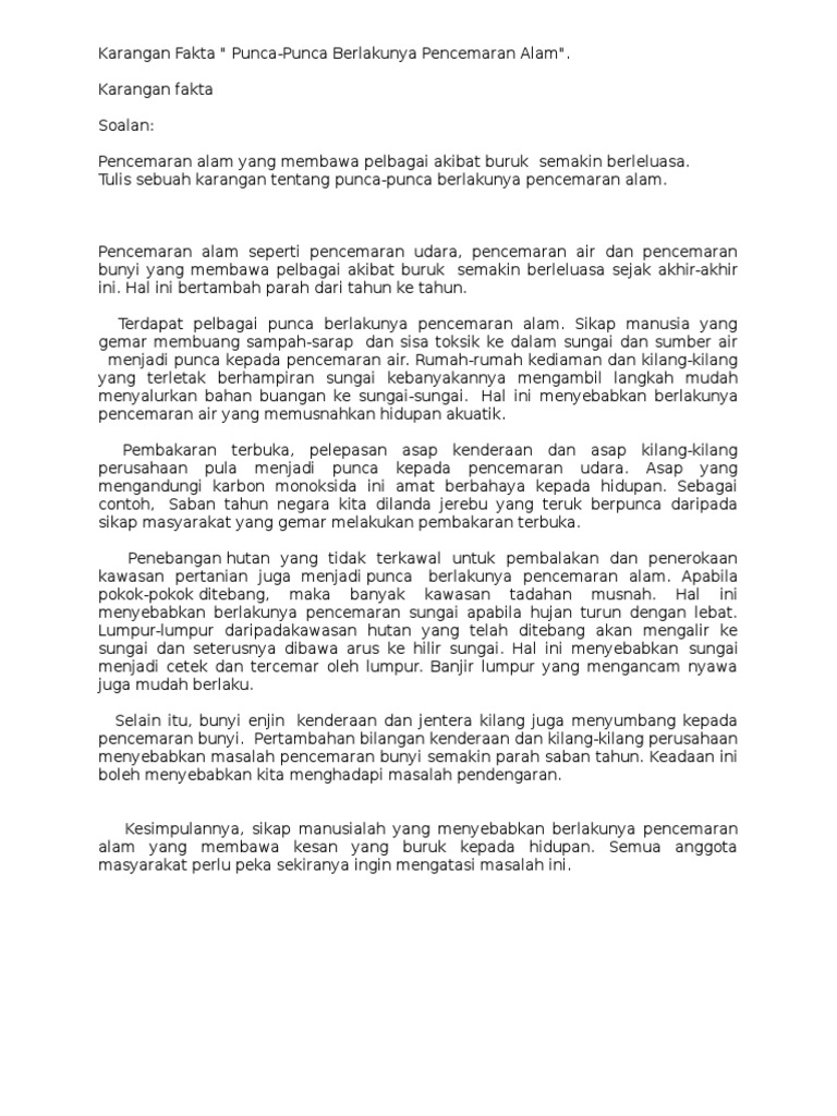 Karangan Fakta Punca Punca Berlakunya Pencemaran Alam Pdf